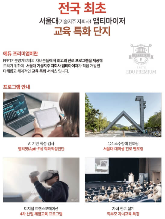 서울대 기술지주 자회사 앱티마이저의 EFETE특화 프리미엄 교육서비스 제공