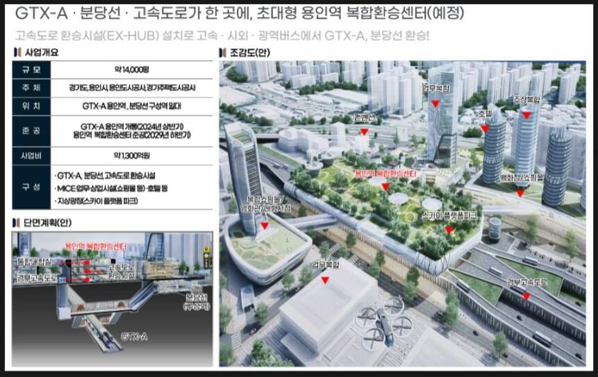 *GTX-A. 분당선. 고속도로가 한 곳에, 초대형 용인역 복합환승센터(예정) - 고속도로 환승시설(EX-HUB) 설치로 고속, 시외, 광역버스에서 GTX-A, 분당성 환승!