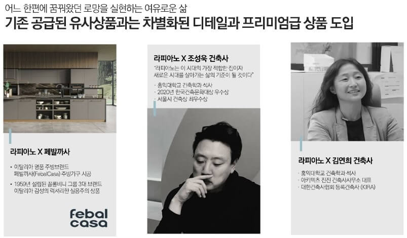 라피아노는 단순히 주거가 아닌, 입주민의 다양한 라이프스타일을 고려한 홈으로, 홈 오피스, 홈 카페, 홈 트레이닝 등의 기능을 추가하여 새로운 진화를 이루고 있습니다.