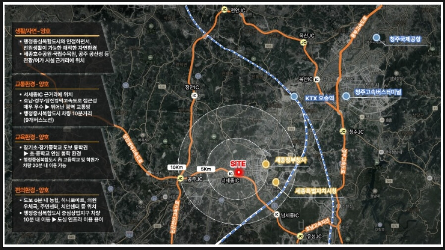 - 행정중심 복합도시와 인접하면서, 전원생활이 가능한 쾌적한 자연환경