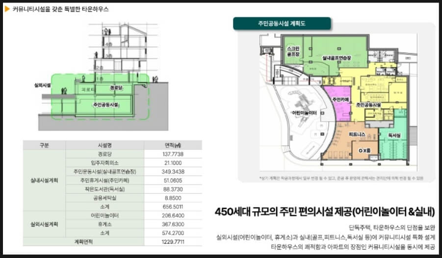 450세대 규모의 커뮤니티 시설이 완비되어 생활의 편의성을 극대화합니다. 스크린 골프 연습장, 피트니스 클럽 등 다양한 시설이 제공되며, 입주민의 삶의 질을 높이는 데 중점을 두었습니다.