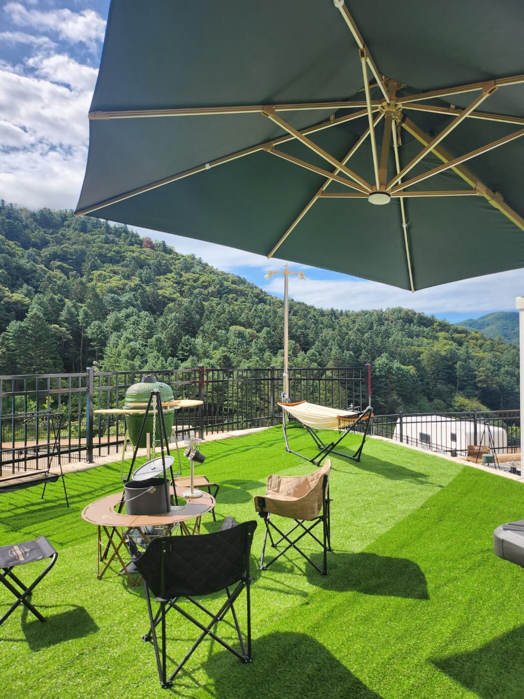 수영장과 썬룸: 가족 단위로 이용하기 좋은 수영장과 최신식 썬룸이 함께 제공되며, 캠핑과 동시에 여유로운 휴식이 가능합니다.