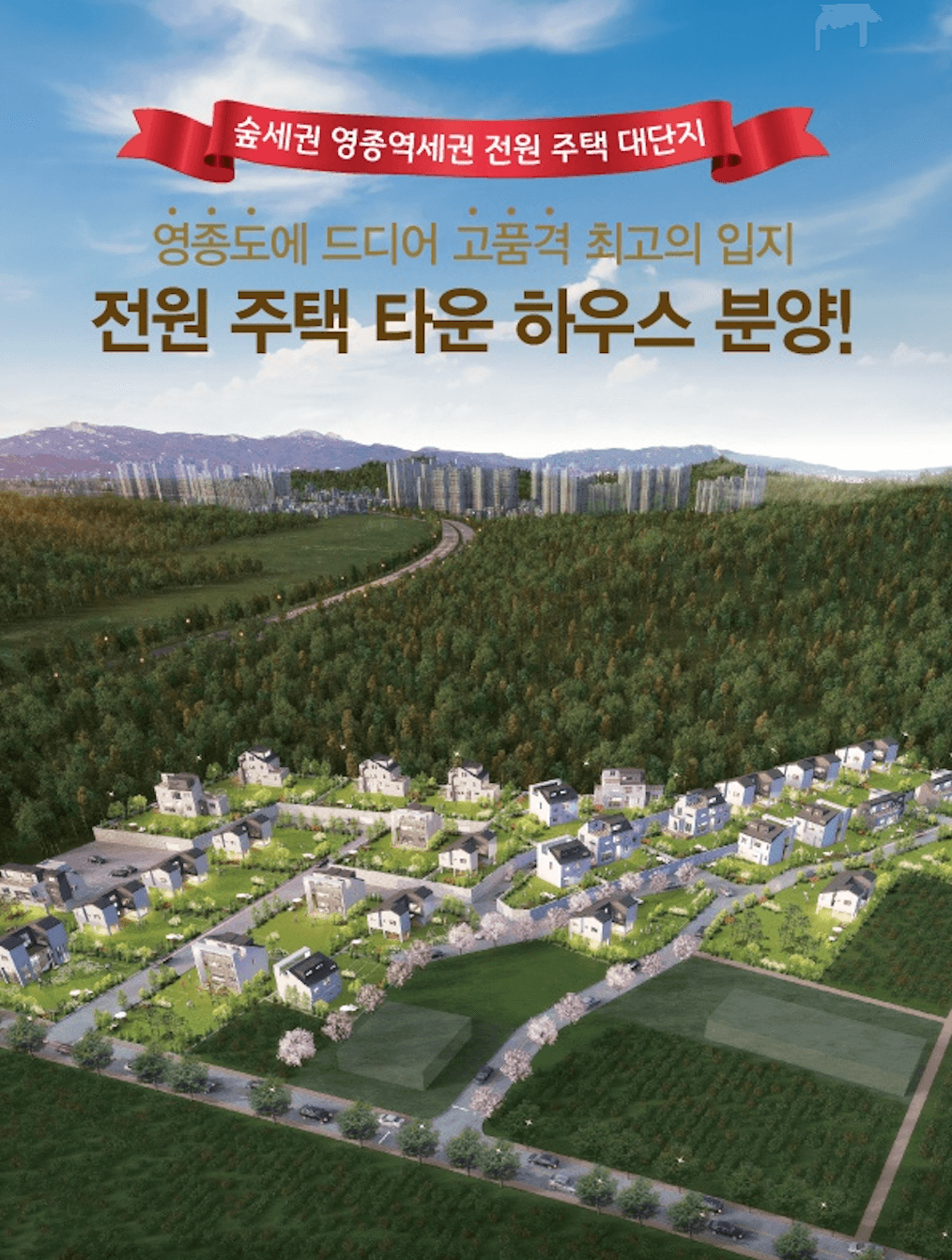 영종도 삼성파라다이스 타운하우스는 뛰어난 자연환경과 교통 편의성, 합리적인 분양가, 다양한 개발 호재를 갖춘 전원주택 단지입니다. 백운산과 바다를 끼고 있는 자연 친화적 환경 속에서 쾌적한 생활을 누리면서도 서울 및 수도권 주요 지역으로의 접근이 용이해 생활의 편리성을 제공합니다.