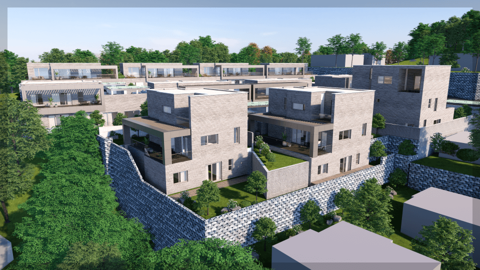 모스만코트는 노출형 콘크리트 디자인으로 외관을 감각적으로 디자인하였습니다. 또한 세대 간 시선을 고려하여 건물을 배치하고, 담장을 설치하여 소음과 프라이버시 문제를 해결했습니다. 더불어, 2층 구조로 설계된 건물은 계단을 최소화하여 편리한 동선을 제공합니다.