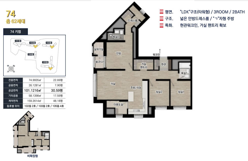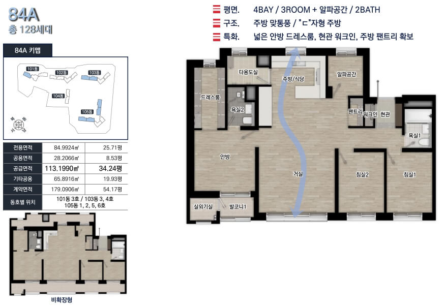 - 4 Bay+LDK 혼합구조 및 전 세대 남향위주 배치