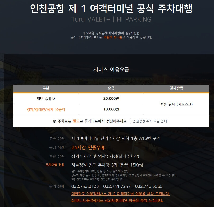 인천공항 발렛파킹예약 주차대행 하이파킹