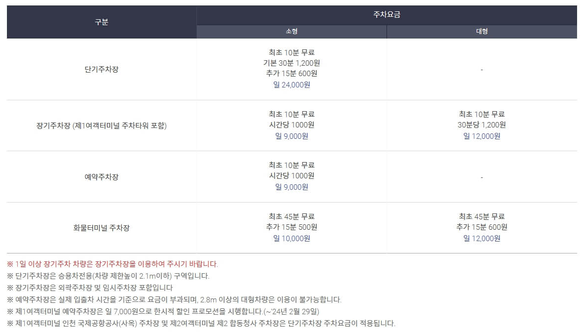 인천공항 주차비 및 주차장 예약 알아보기