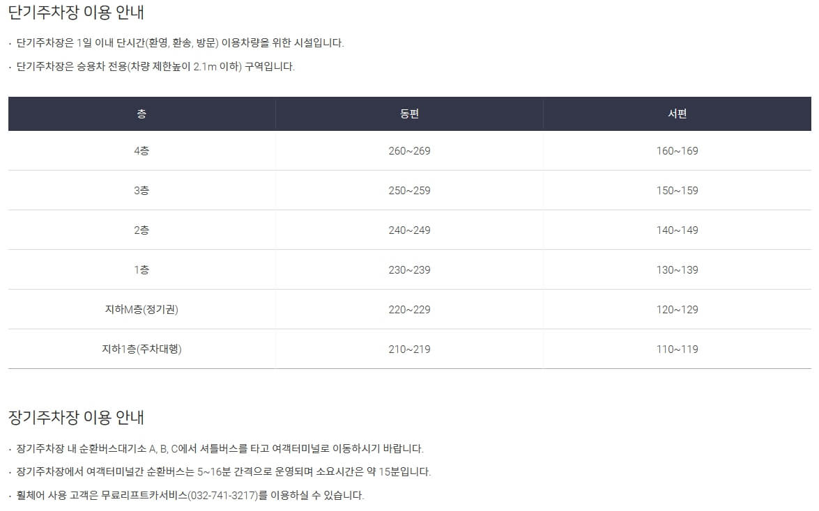 제2여객터미널 주차장 안내