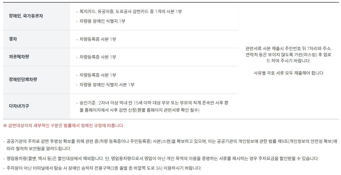 자동감면받지 못한 경우 각각의 감면사유에 해당하는 서류를 출차 후 30일 이내에 사후환불 신청 홈페이 지을 출차 영수증번호와 함께 제출하시면 출차기록과 대조하여 감면해 드립니다.