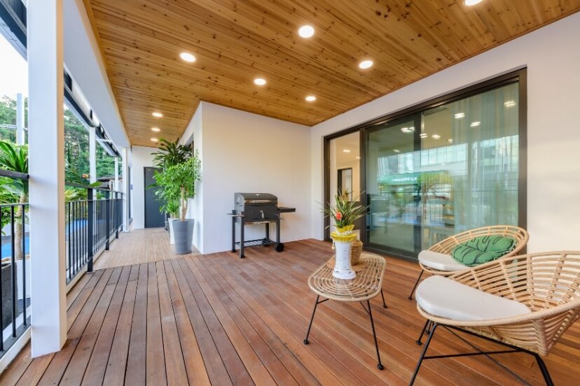 4층 펜트하우스는 49.80㎡(15.1평)의 다락과 140.1㎡(42.4평)의 옥상정원을 포함해 총 사용면적이 449.3㎡(136평)에 달하는 넓은 공간을 자랑합니다. 옥상 정원에서는 바다와 한라산의 탁 트인 경관을 감상할 수 있으며, 가족 및 친구들과 함께 바비큐 파티 등 여유로운 시간을 보낼 수 있는 완벽한 장소입니다.