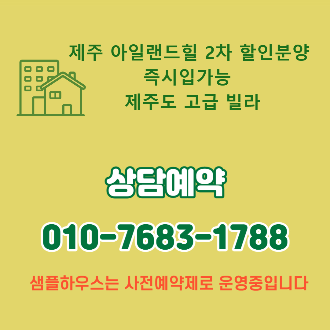제주 아일랜드힐 2차 애월 고급 빌라 1세대 1억 원 특별 분양