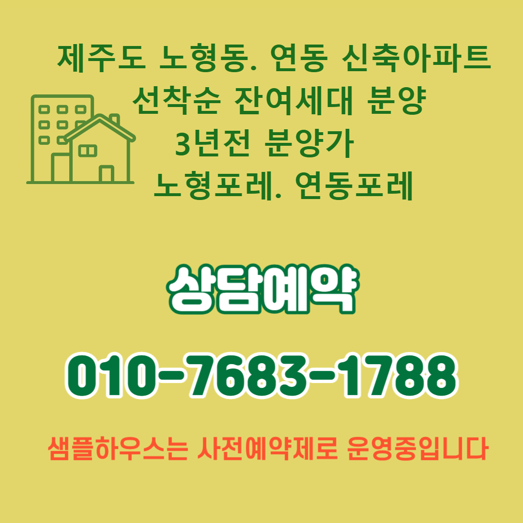 | 제주 노형포레.연동포레 신축아파트 선착순 잔여세대 분양 (3년전 분양가) (0) | 2024.09.30 |