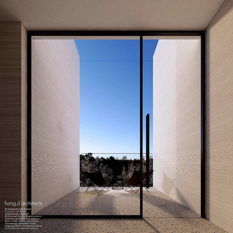 - 외부 시선을 차단하는 설계로 각 세대의 독립성을 유지하며, 모든 공간에서 중정 가든의 뷰를 확보했습니다.