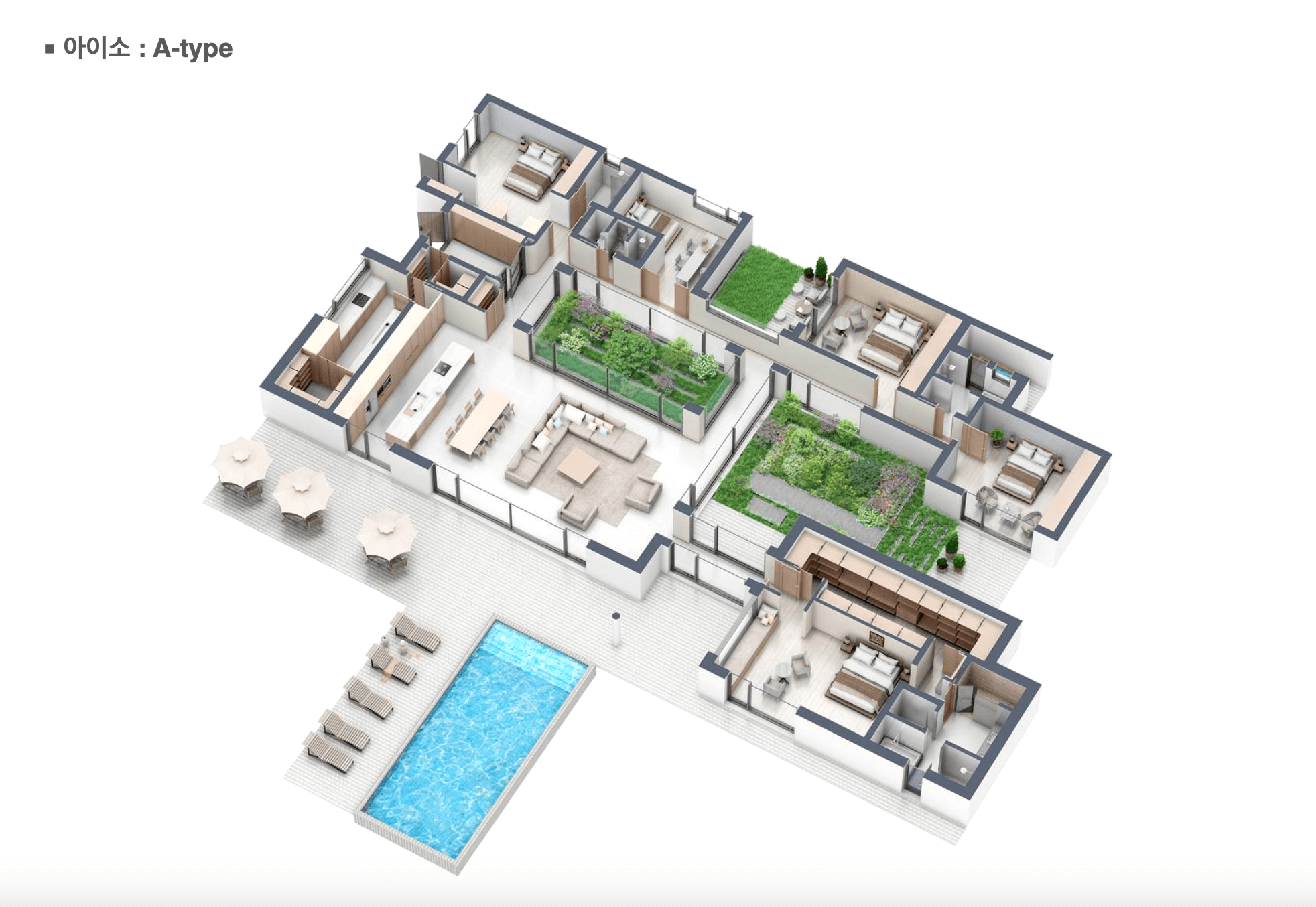 계단이 없는 단층 구조로 설계되어 거주자들에게 편리한 이동 환경을 제공합니다. 이러한 수평적 동선은 고급 주택의 기준을 충족시키며, 모든 연령대의 거주자들에게 적합한 환경을 조성합니다.