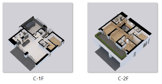 더 갤러리나인은 A, B, C 3가지 타입으로 구성되어 있습니다. 수영장이 있는 A타입 3세대와 없는 B타입 1세대, C타입 5세대가 있으며, 모든 세대는 벙커형 실내주차장을 갖추고 있습니다. 단지 입구에는 차량 진출입 차단기가 설치되어 있으며, 입구 쪽에는 2종 근린생활시설이 들어설 예정입니다. 각 세대는 넓은 마당과 라임스톤 천연대리석 외관으로 고급스러움을 더했습니다.