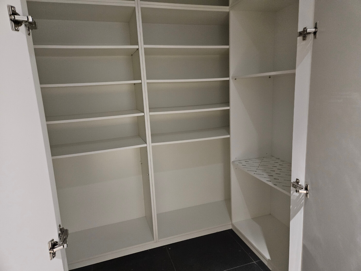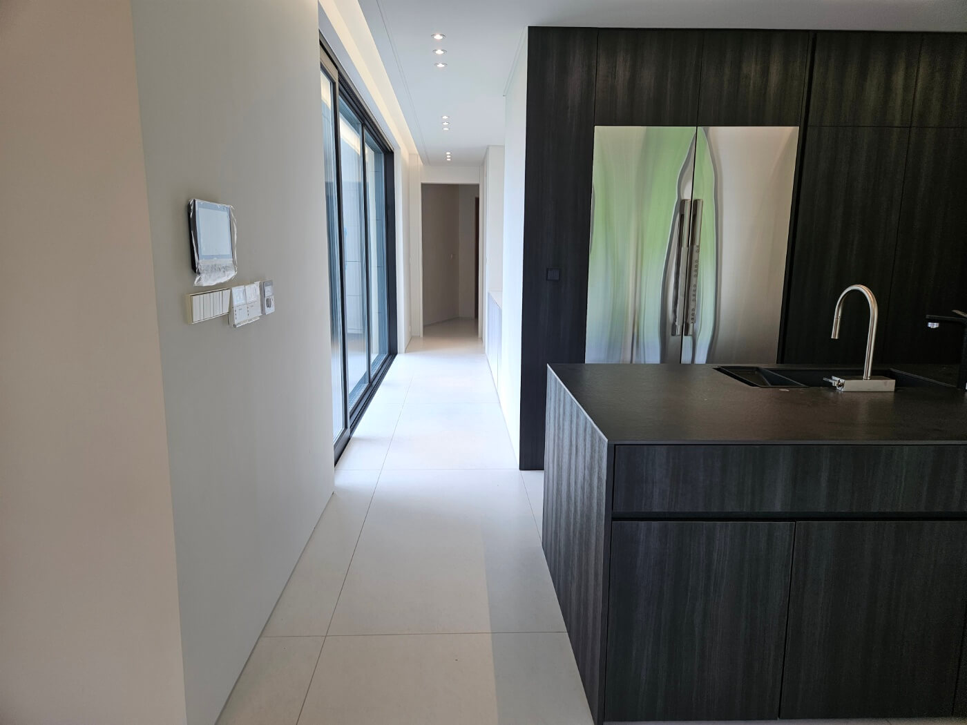 주방은 타일 마감으로 고급스러움을 더했으며, 거실과의 단차 설계로 공간 분리를 명확히 했습니다. 넉넉한 수납공간과 고급 가전제품이 포함되어 실용성과 미관을 모두 충족합니다.