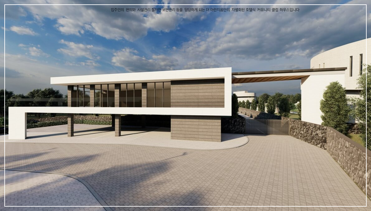 Hi-End Community House: 최상의 커뮤니티 시설 더 아란치움은 입주민들의 건강하고 품격 있는 생활을 위해 최고 수준의 커뮤니티 시설을 갖추고 있습니다. 스크린 골프장과 피트니스 클럽은 입주민의 건강 관리를 돕고, 다이닝 라운지에서는 호텔식 조식 서비스를 제공합니다. 비즈니스 로비 라운지는 손님을 맞이하거나 업무를 처리하기에 이상적인 공간입니다.