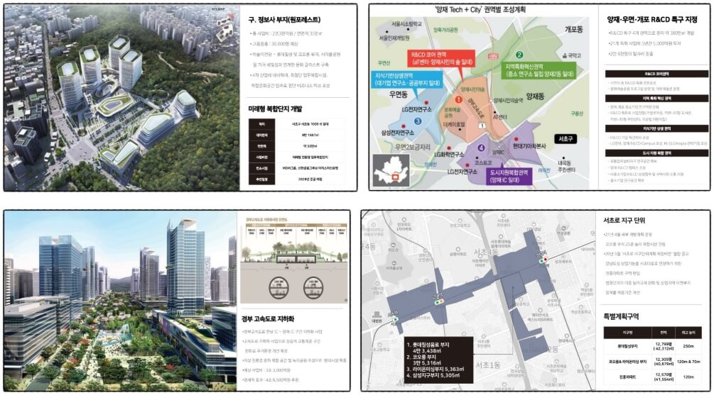 - 양재 R&CD 특구 - 양재 R&CD 특구 개발로 1만 5,000여 명의 연구 인력이 유입되며 지역 가치가 상승할 전망입니다.