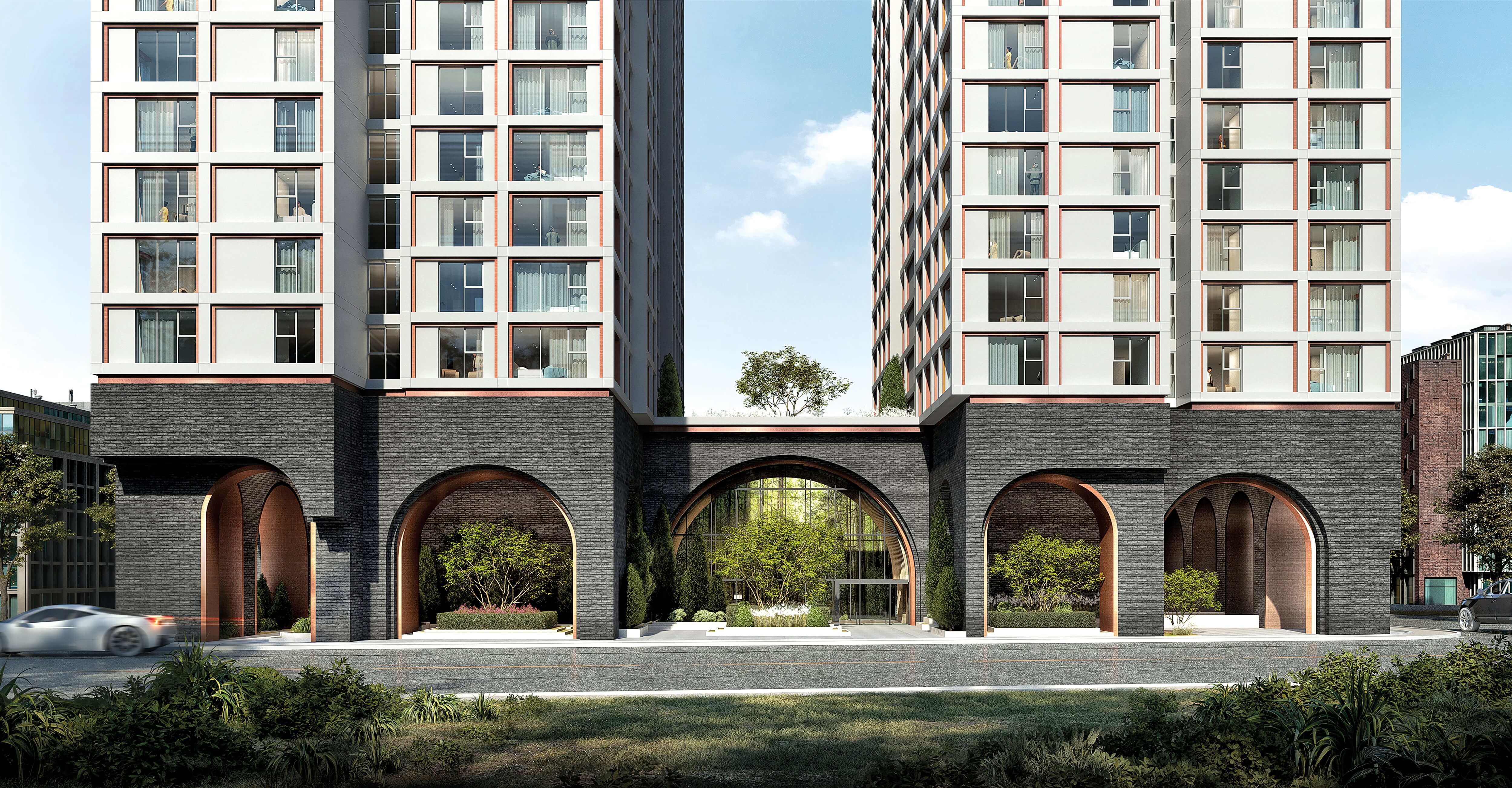 - 1층 필로티: 8m 높이의 아치형 구조로 쾌적한 거리 환경 제공