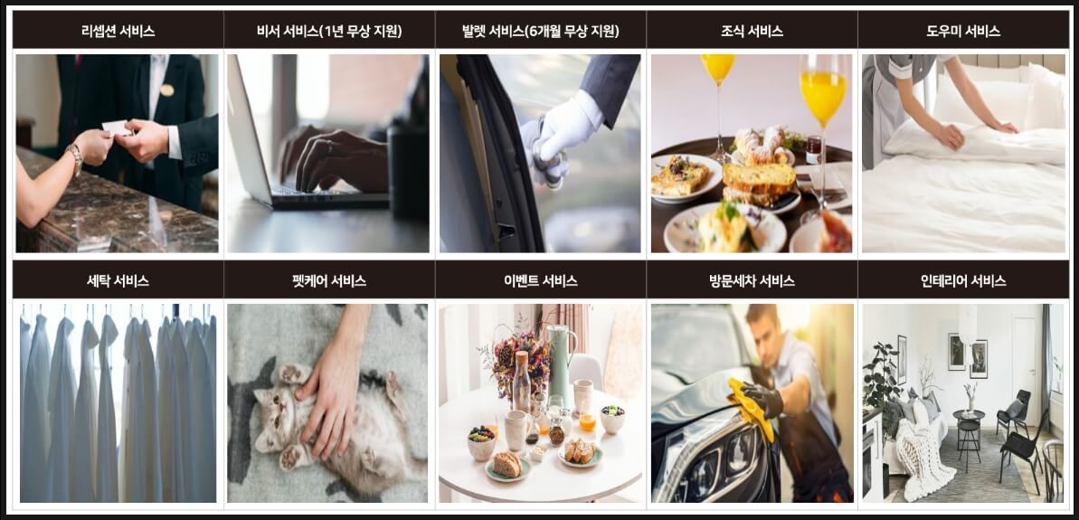발렛 서비스: 입주민은 6개월간 무상 제공 스마트 주거 시스템: 얼굴 인식 출입, 스마트 스위치 등 IoT 기술 적용 최고의 입지와 생활 편의성