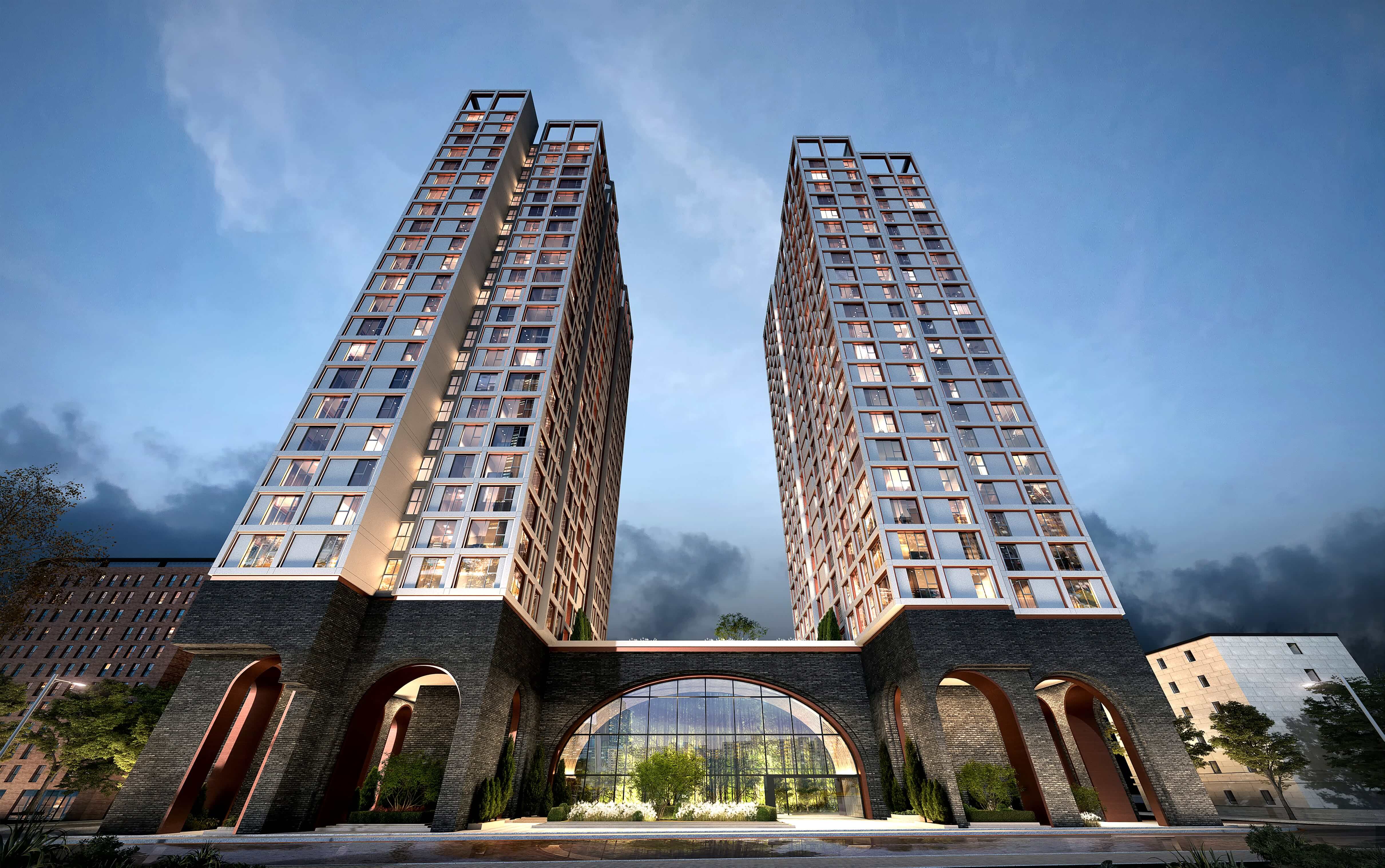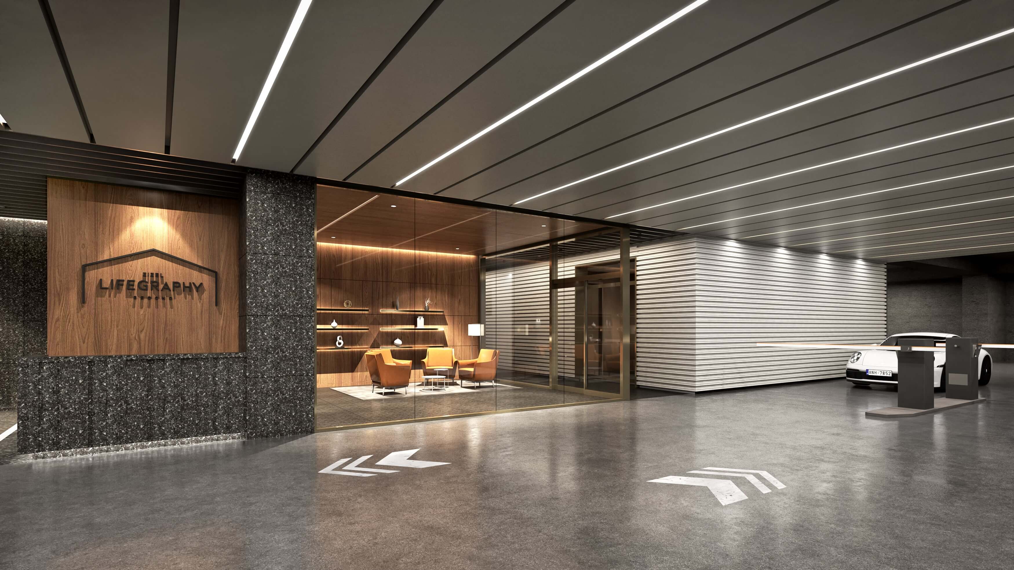 지젤 라이프그라피 서초는 보행자와 주변 환경을 고려한 두 개의 타워로 설계되었습니다.
