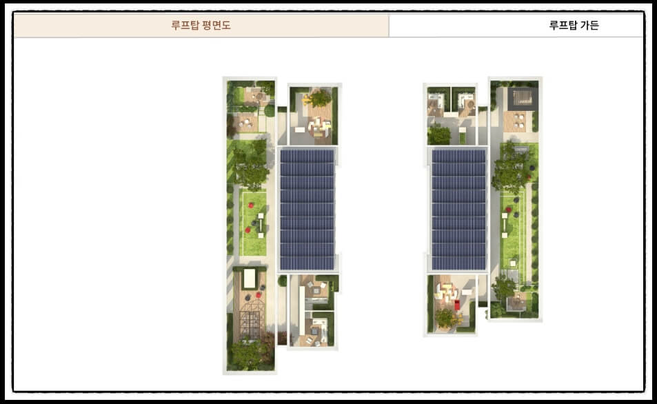 도심 속에서 자연을 느낄 수 있도록 루프탑에 정원이 마련되었으며, 입주민은 이곳에서 강남의 시티뷰를 즐길 수 있습니다.