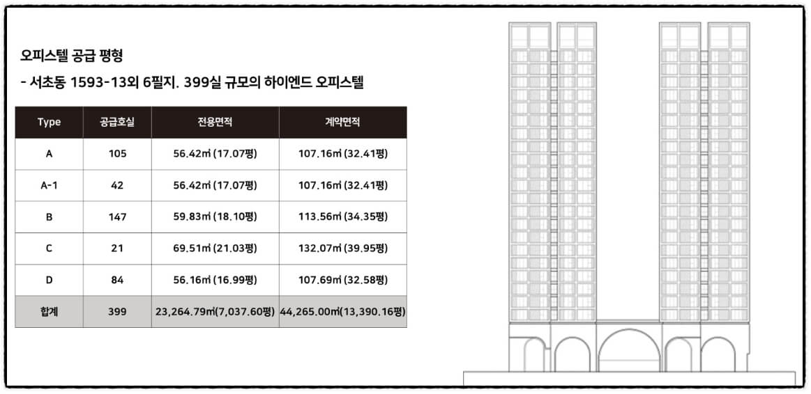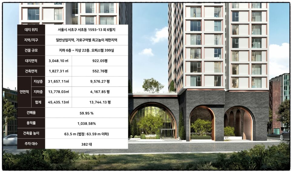 규모: 지하 6층~지상 22층, 총 399실 대지면적: 3,048㎡