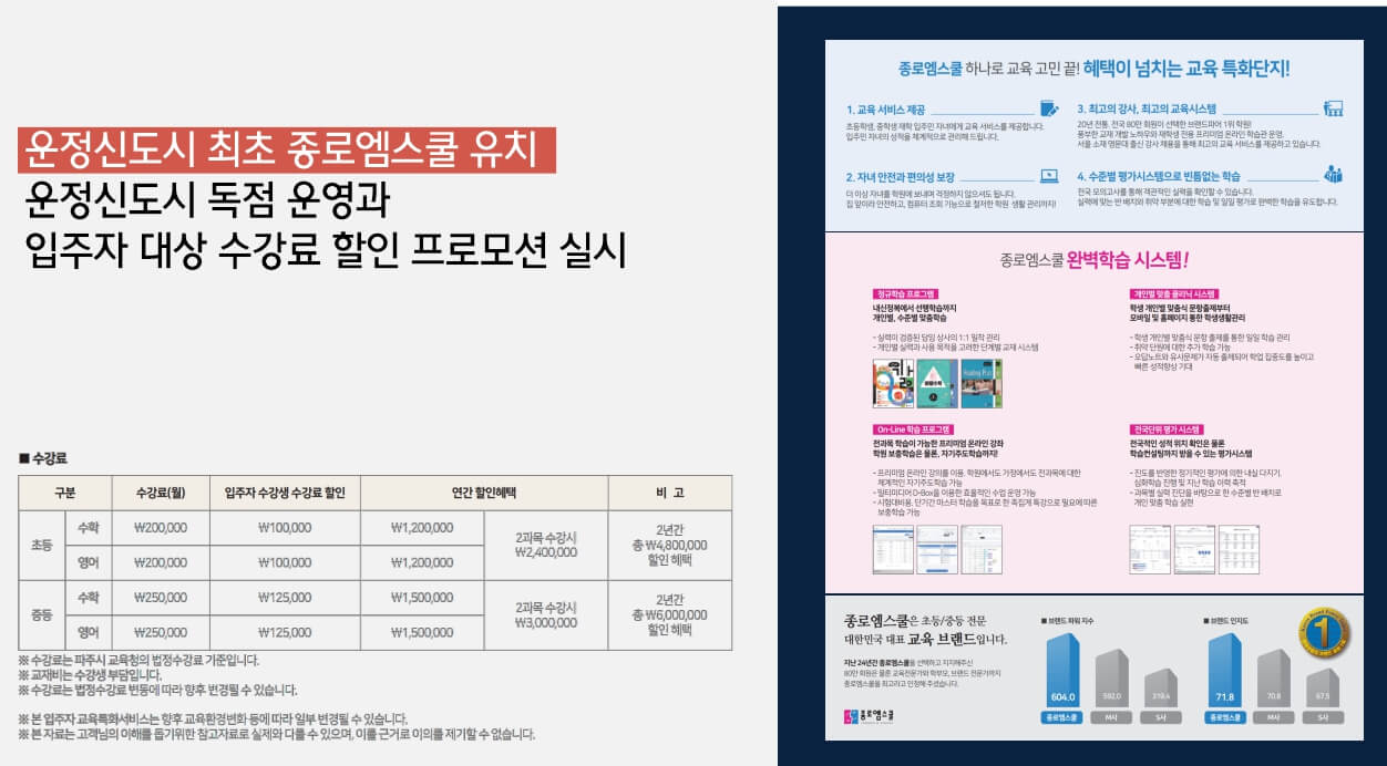 파주시 단지 내 최초 종로엠스쿨 입점 확정, 입주민 자녀 수강료 할인 혜택 제공