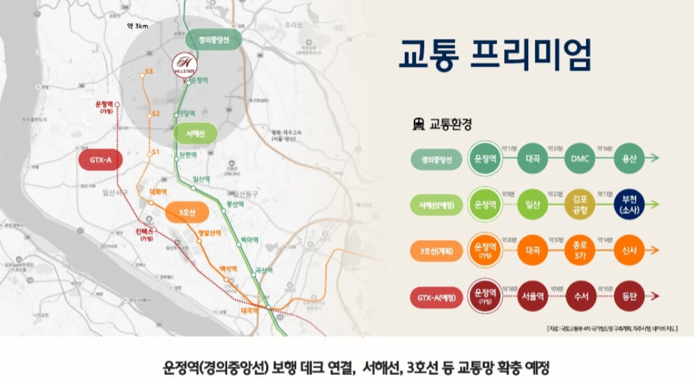 경의중앙선 운정역 1번 출구와 단지가 보행데크로 바로 연결된 역세권 대단지