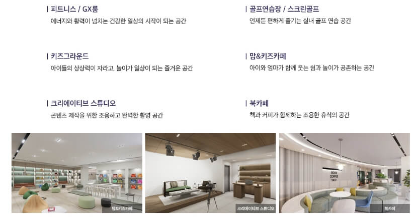 커뮤니티 시설 역시 피트니스센터, 작은 도서관, 북카페, 키즈그라운드 등 다양한 공간이 블록별로 배치되어 가족 단위 입주민에게 적합합니다. 어린이집과 경로당 등 세심한 시설 배치는 입주민들의 삶의 질을 높이는 핵심 포인트입니다.