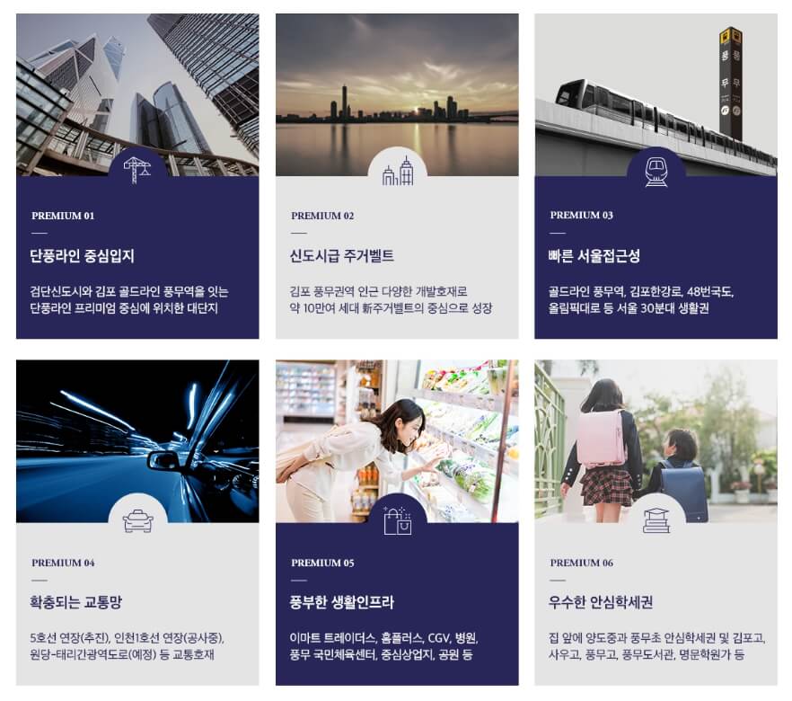 김포골드라인 풍무역과 인접해 서울 접근성이 우수하며, 향후 GTX-D 노선 등 교통 호재까지 더해져 풍무역세권 일대의 자산 가치는 꾸준히 상승할 전망입니다.